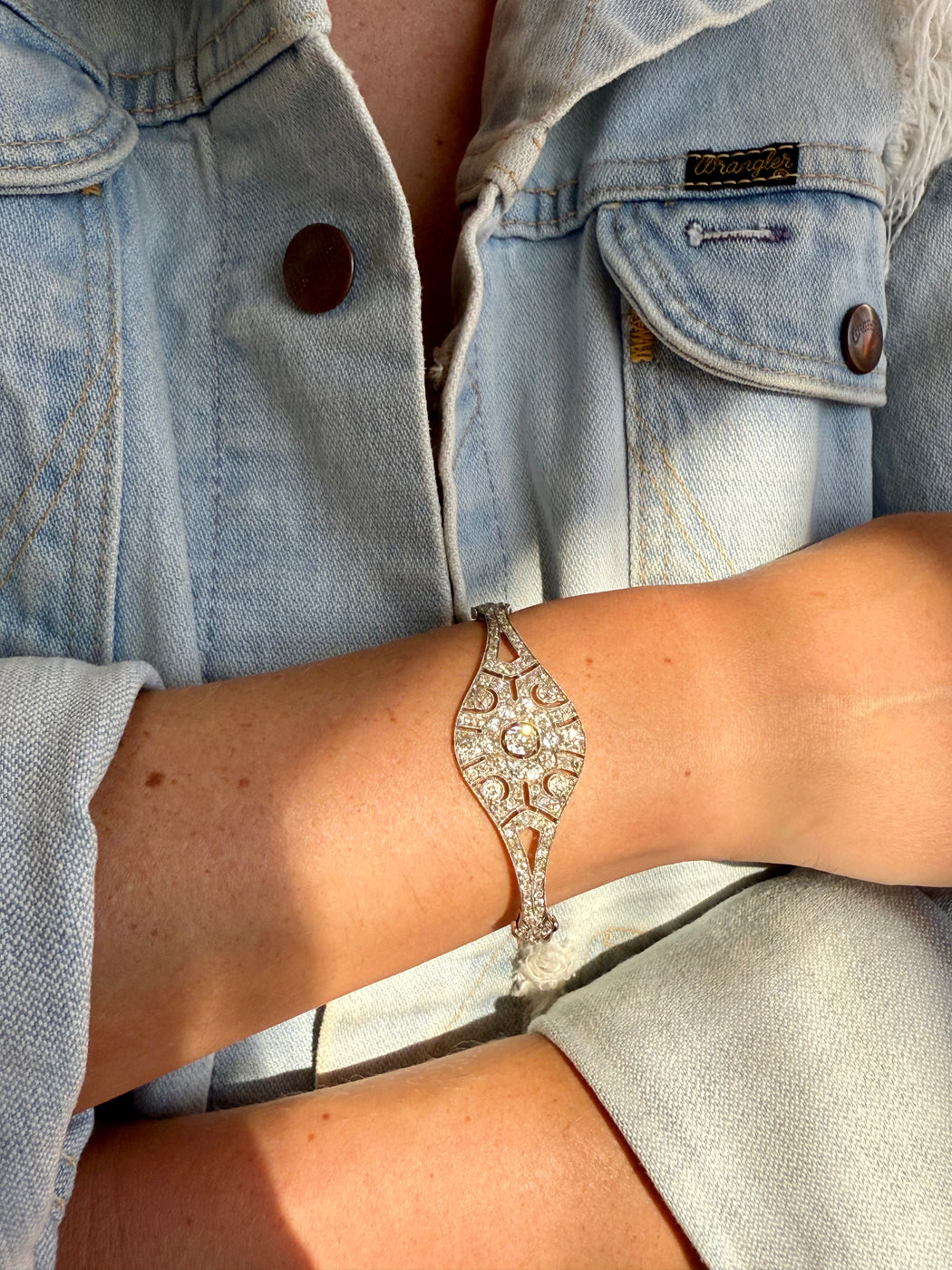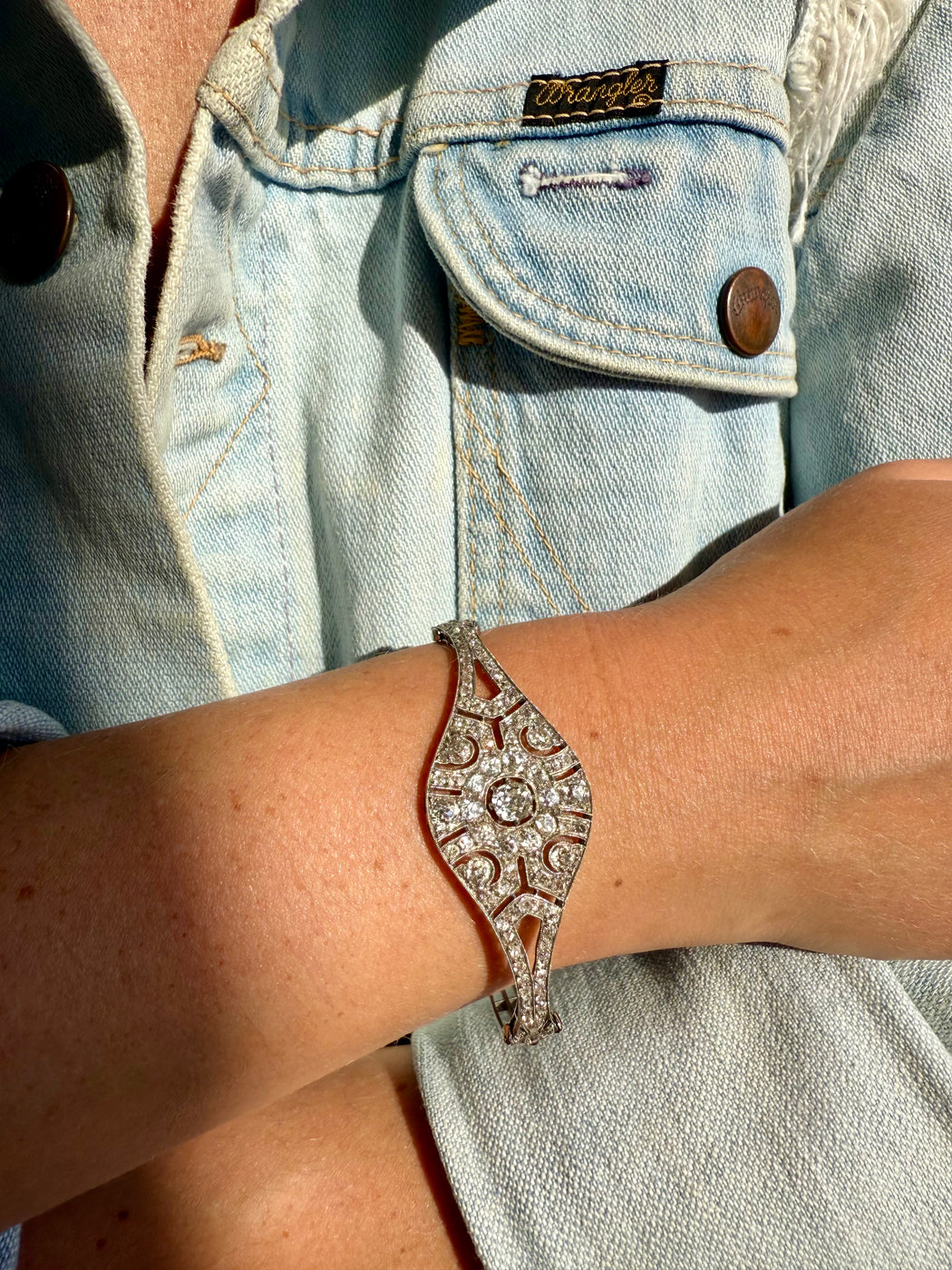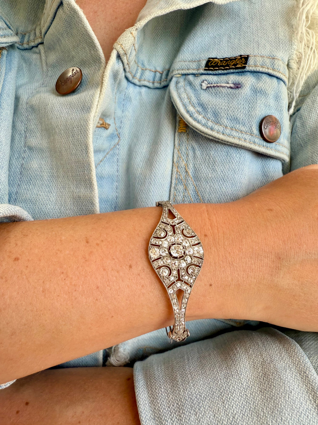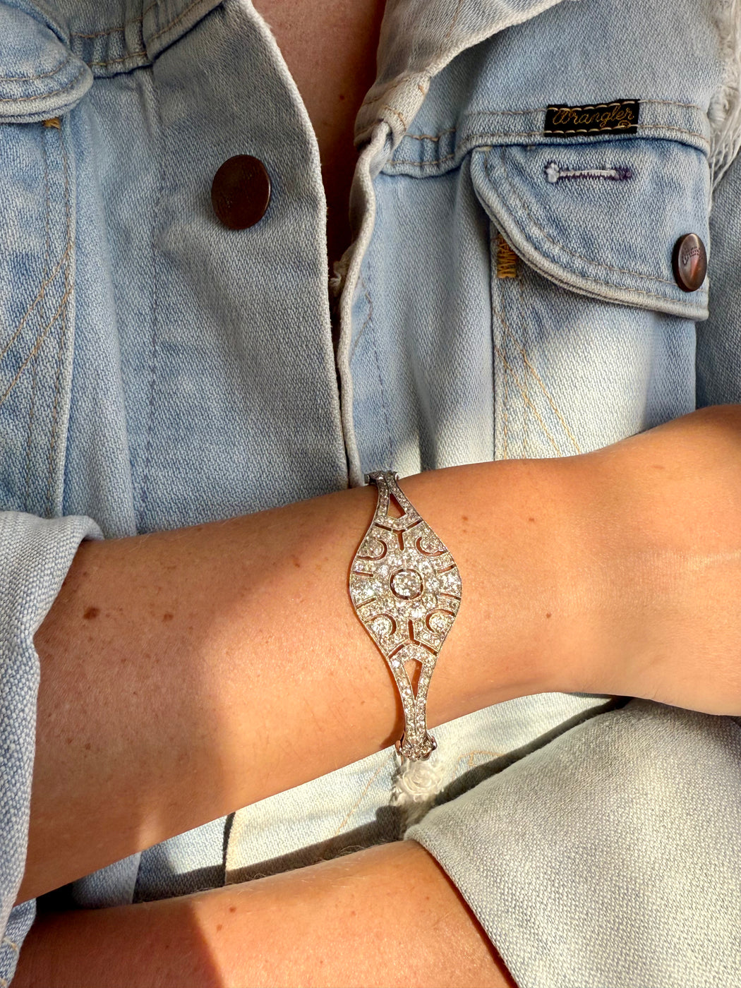 Art Deco Filagree 5.00ctw Diamond Bangle Bracelet, Platinum