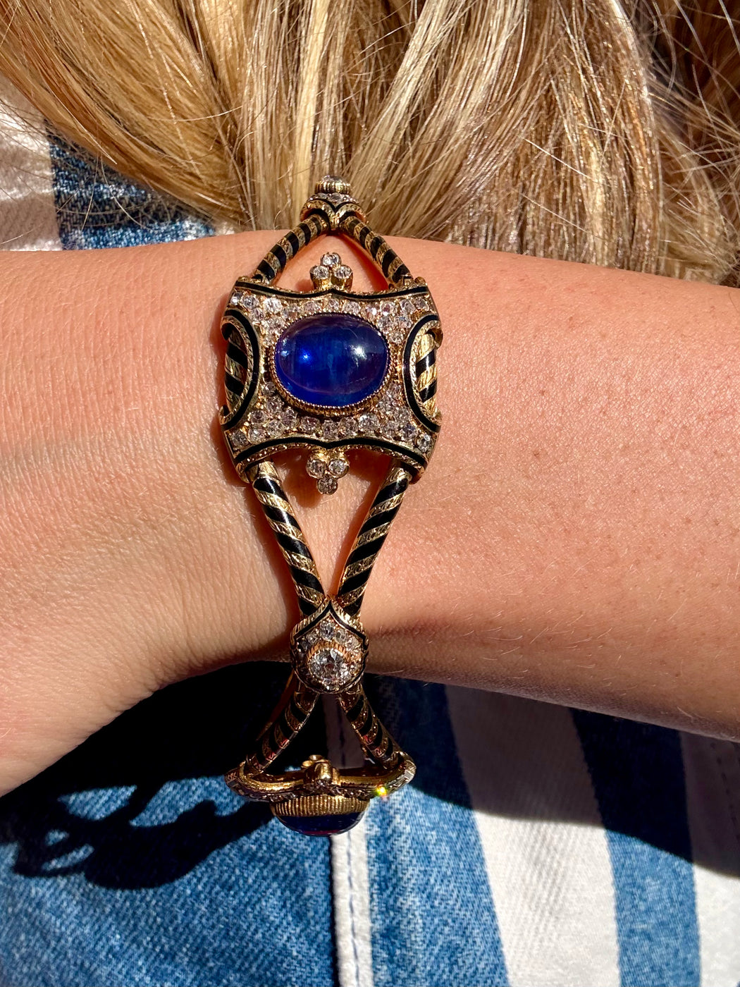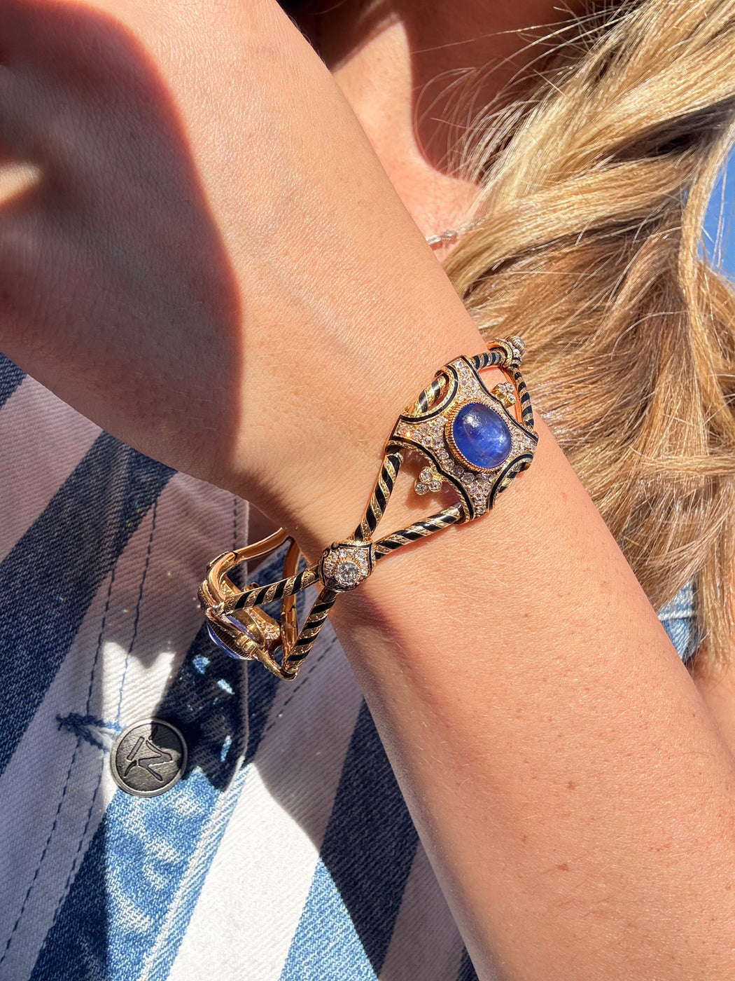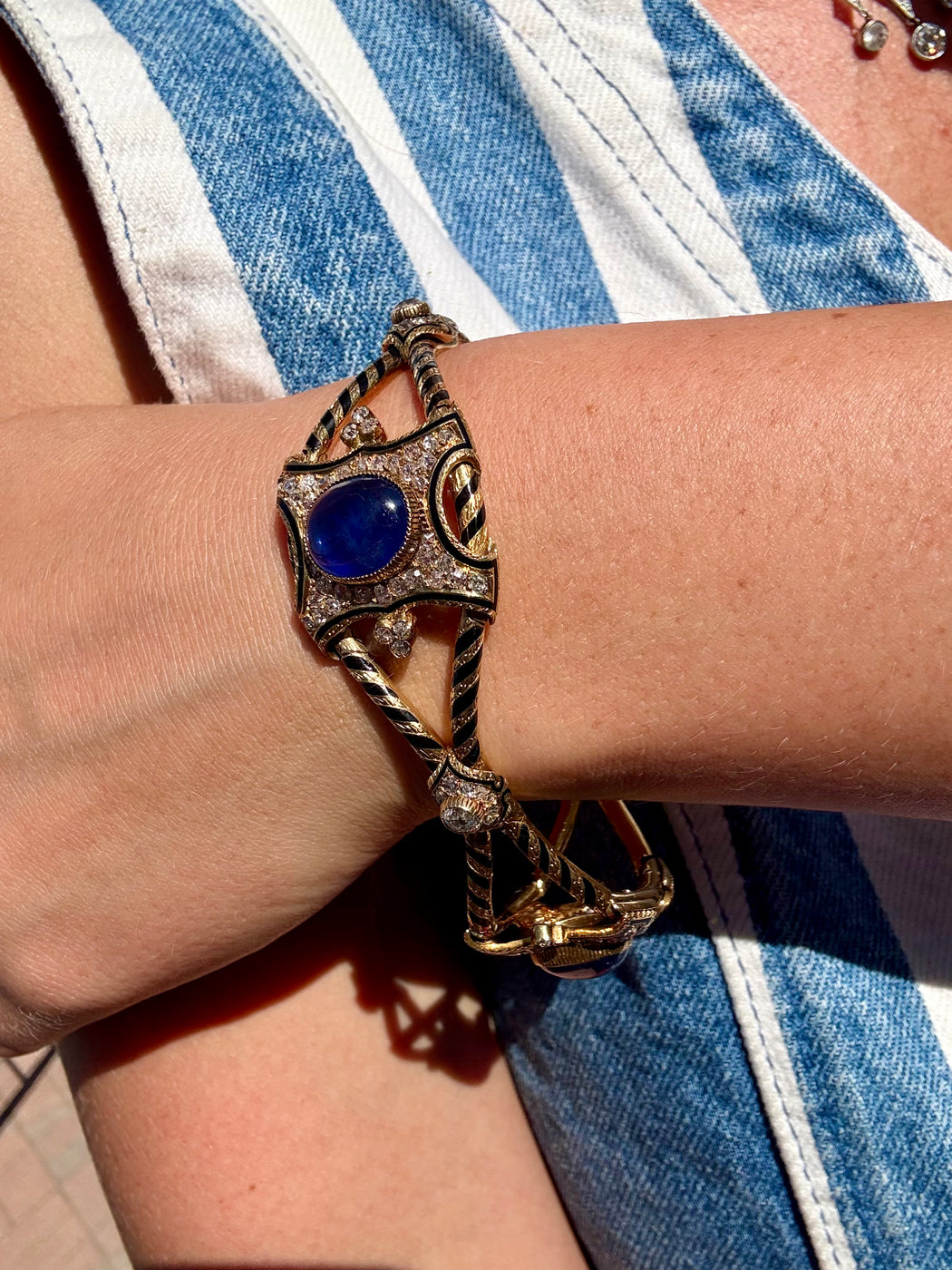 Blue Sapphire & Diamond Black Enamel Bracelet, 18k