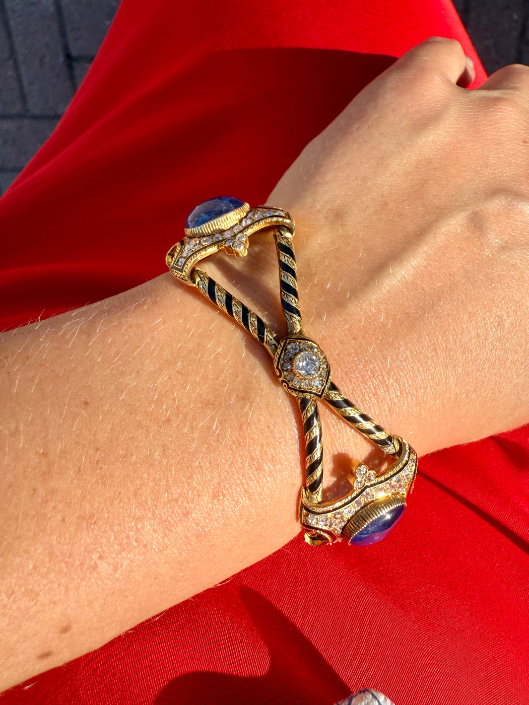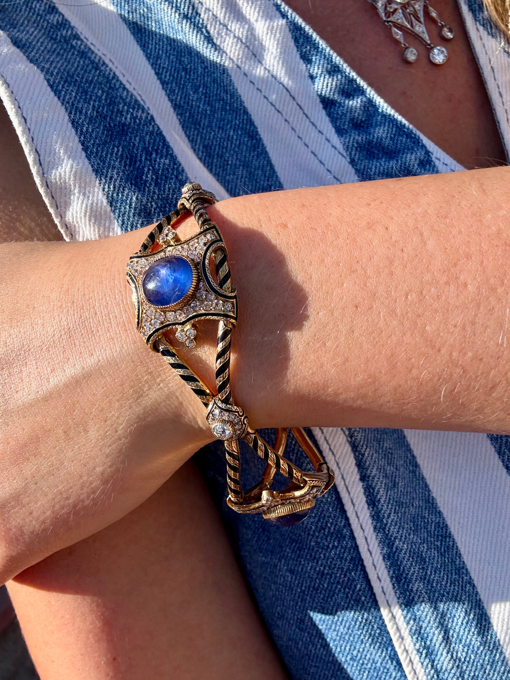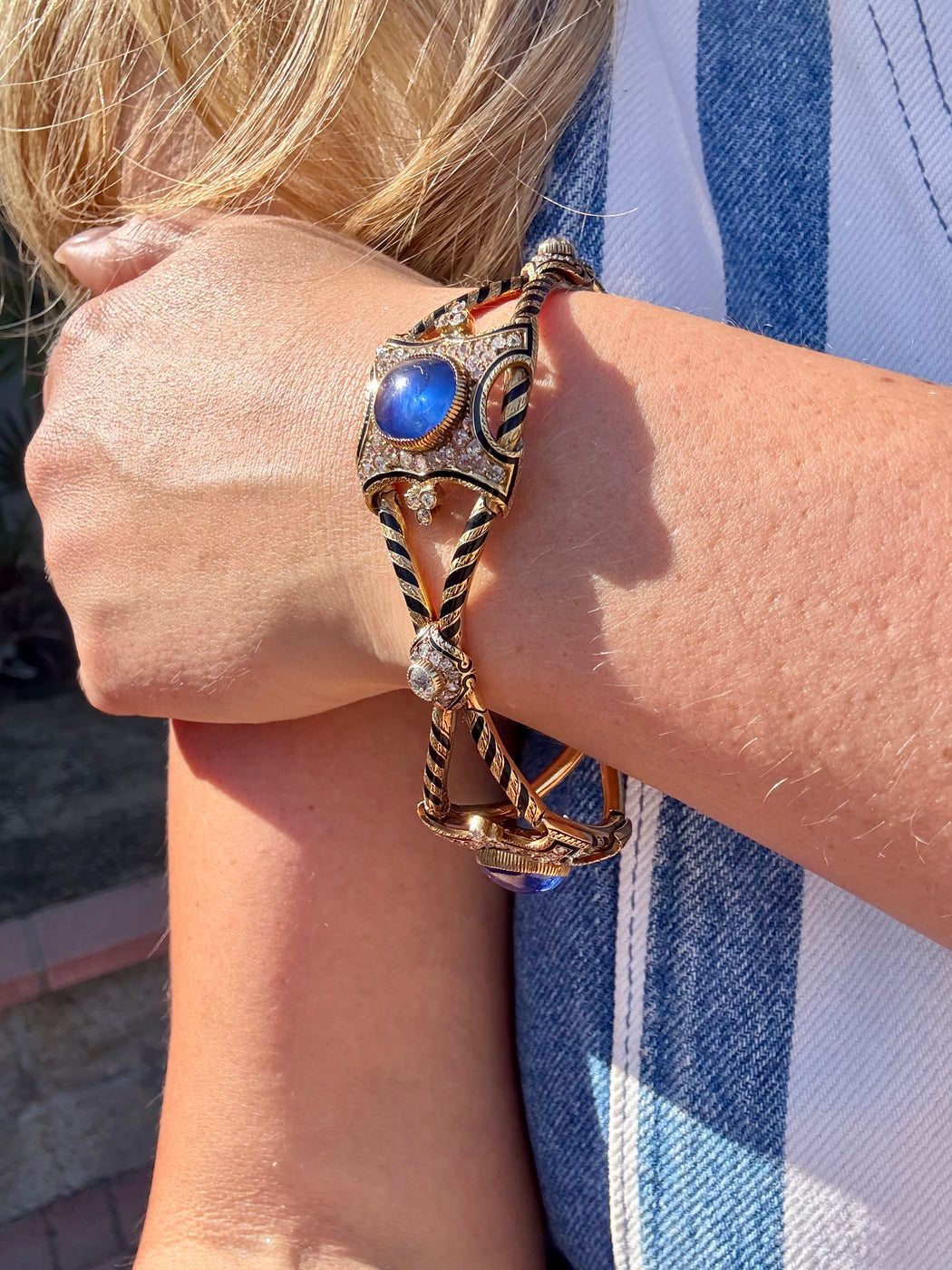 Blue Sapphire & Diamond Black Enamel Bracelet, 18k