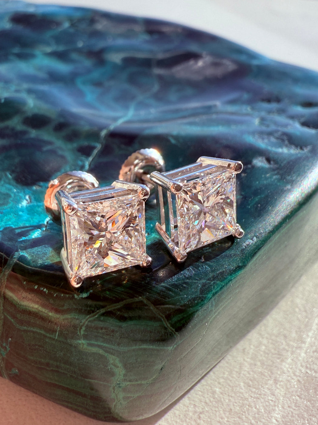 Princess Cut Diamond Studs 4.03ctw, 14k