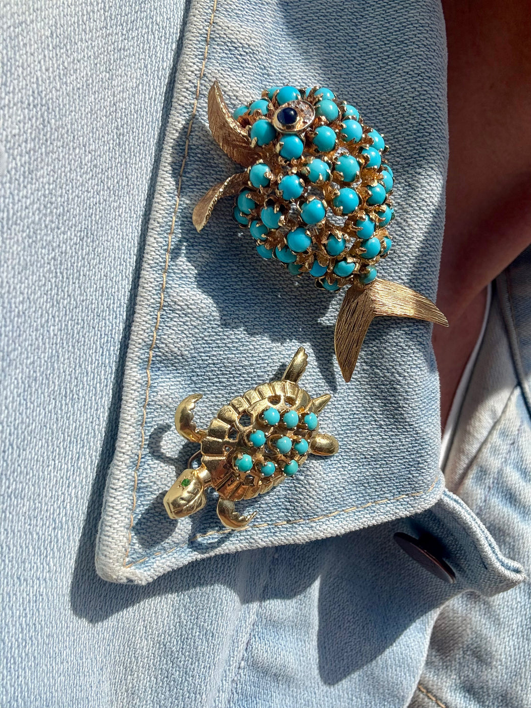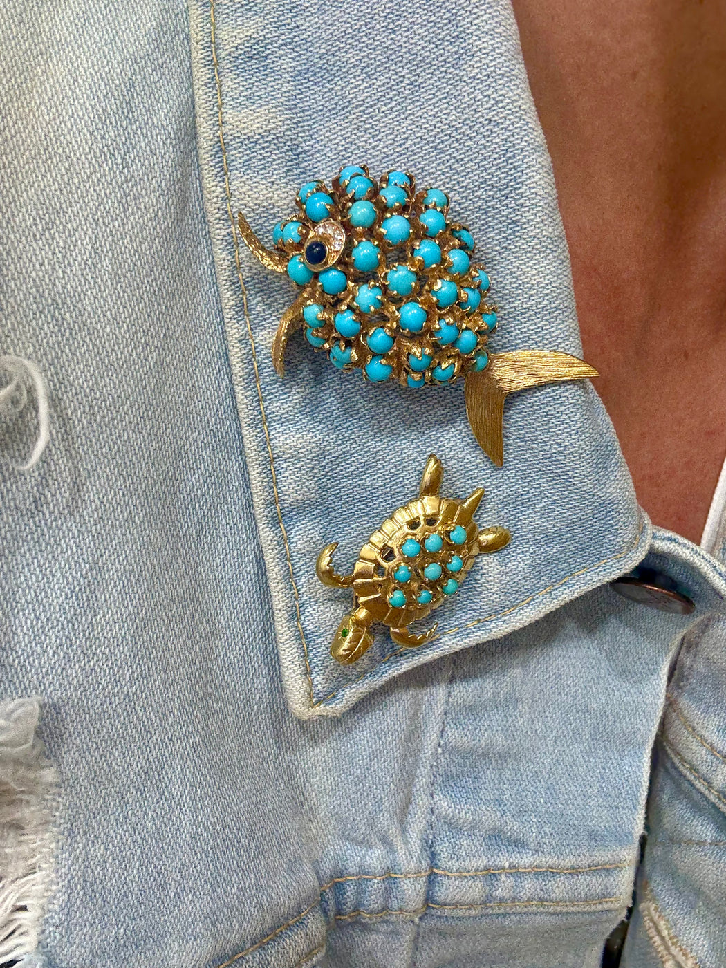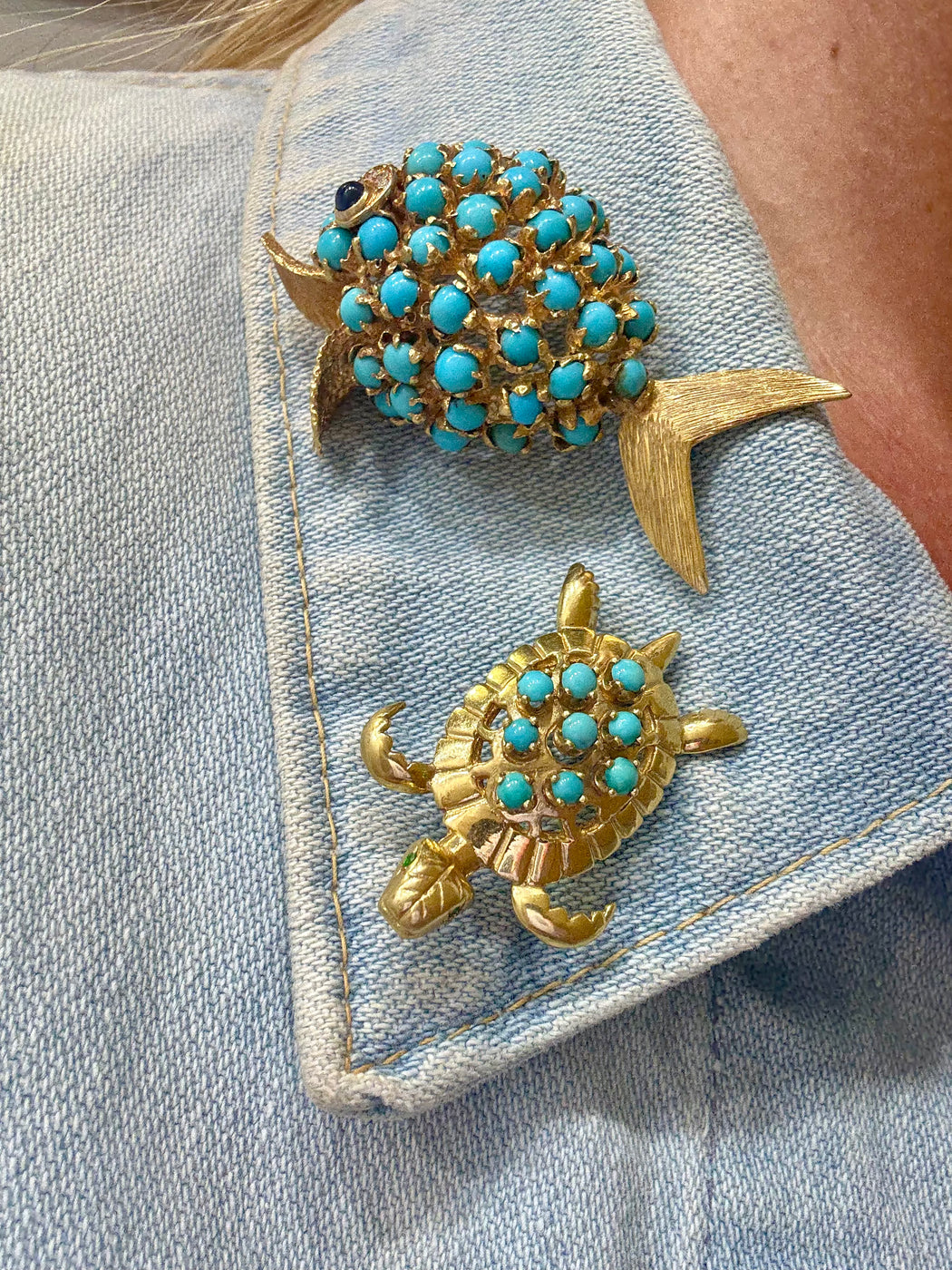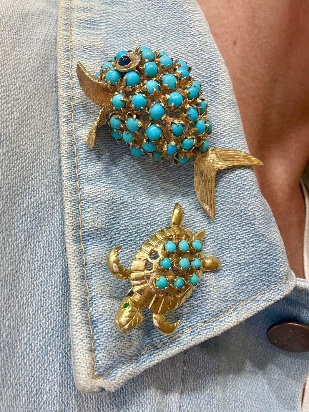 Fish Turquoise, Lapis & Diamond Pin, 18k