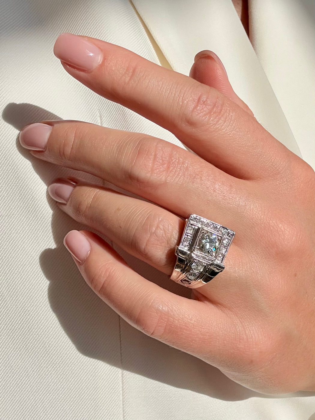 Geometric Diamond Ring, 14k