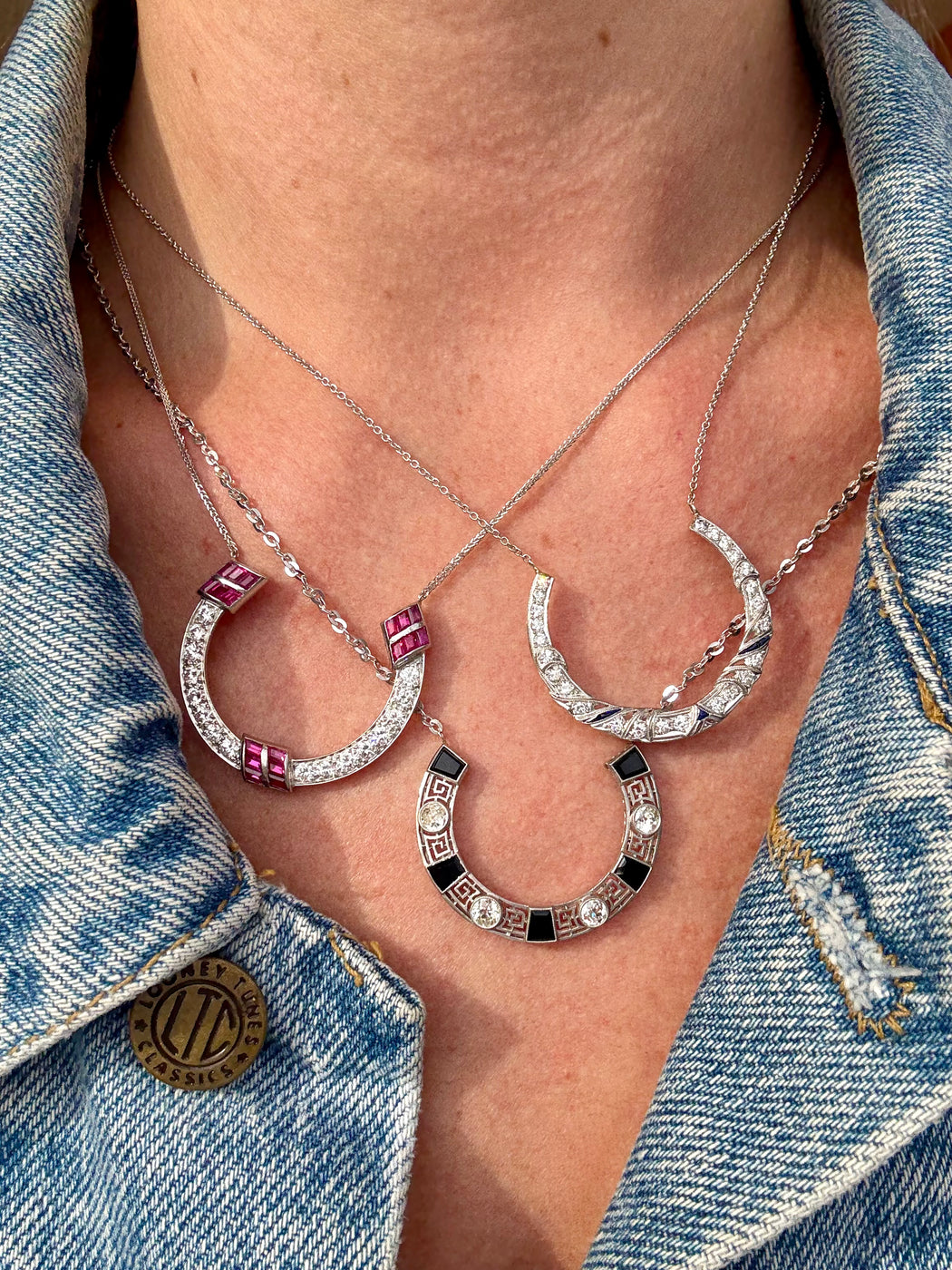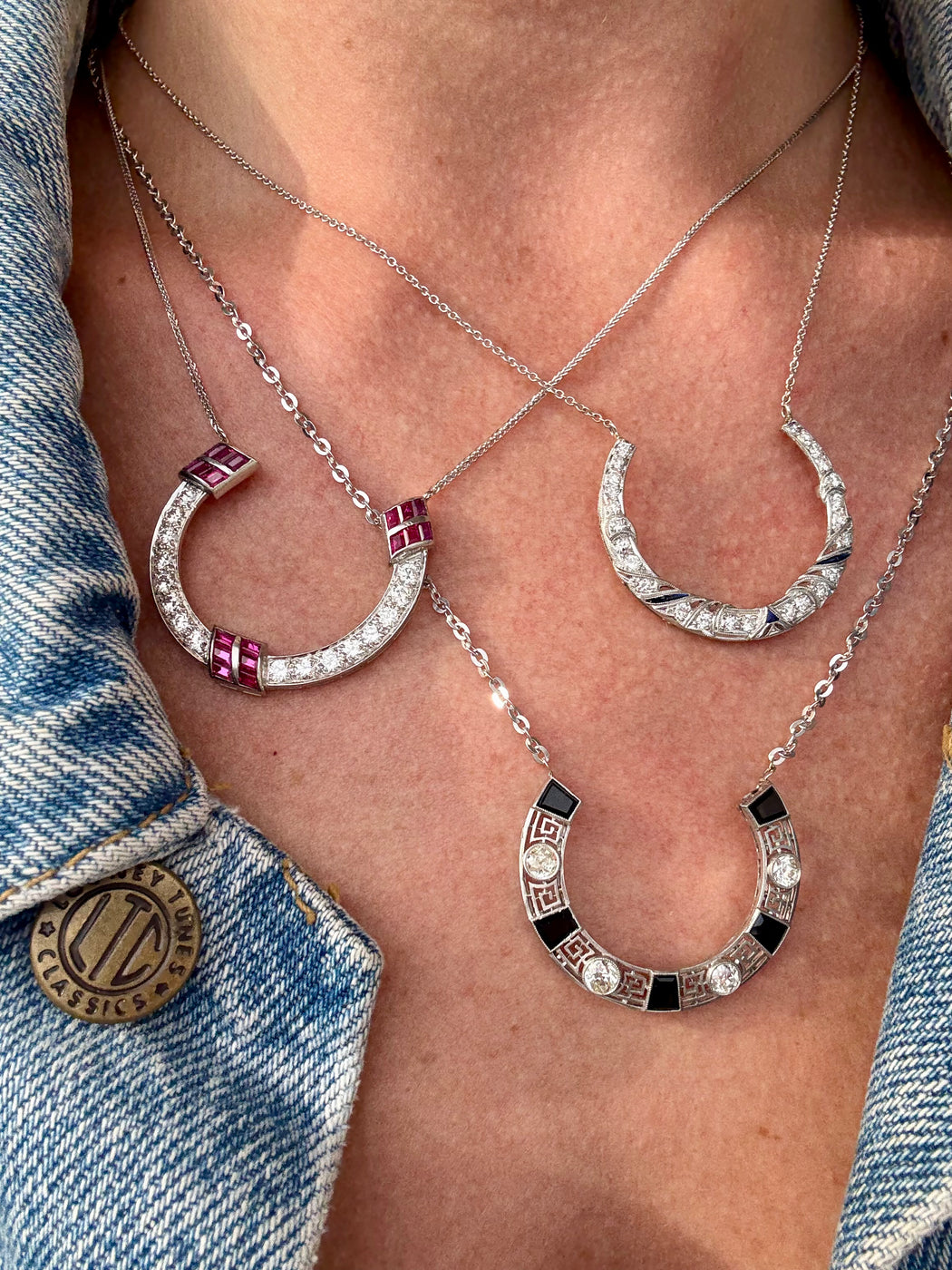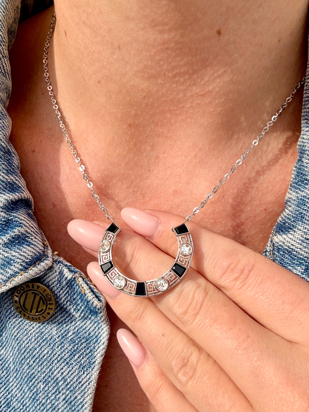 Art Deco Black Onyx & Diamond Horseshoe Pendant, Platinum