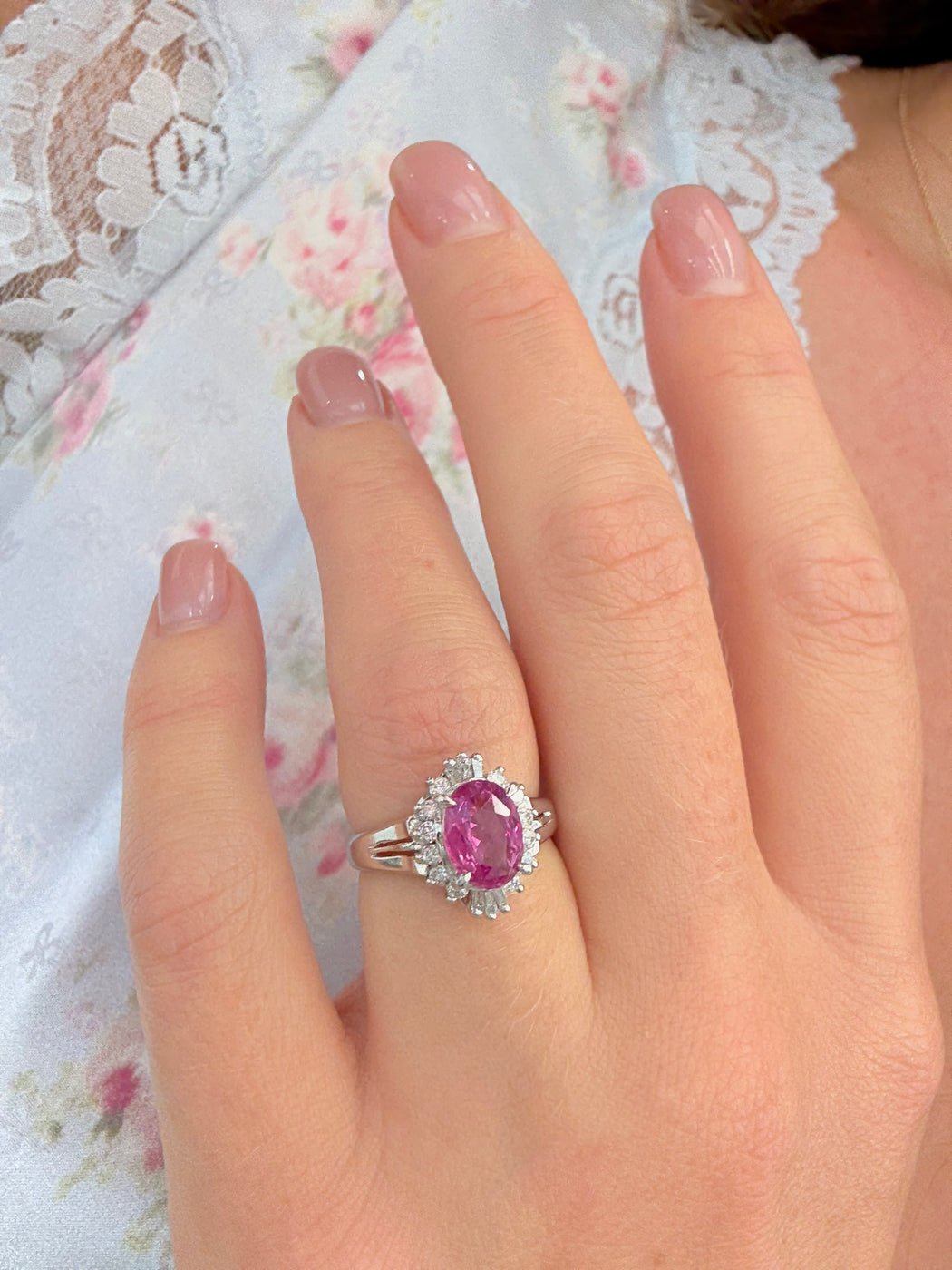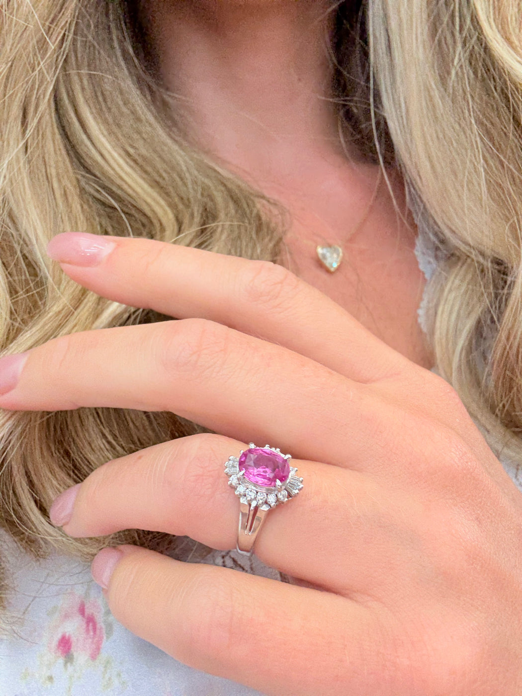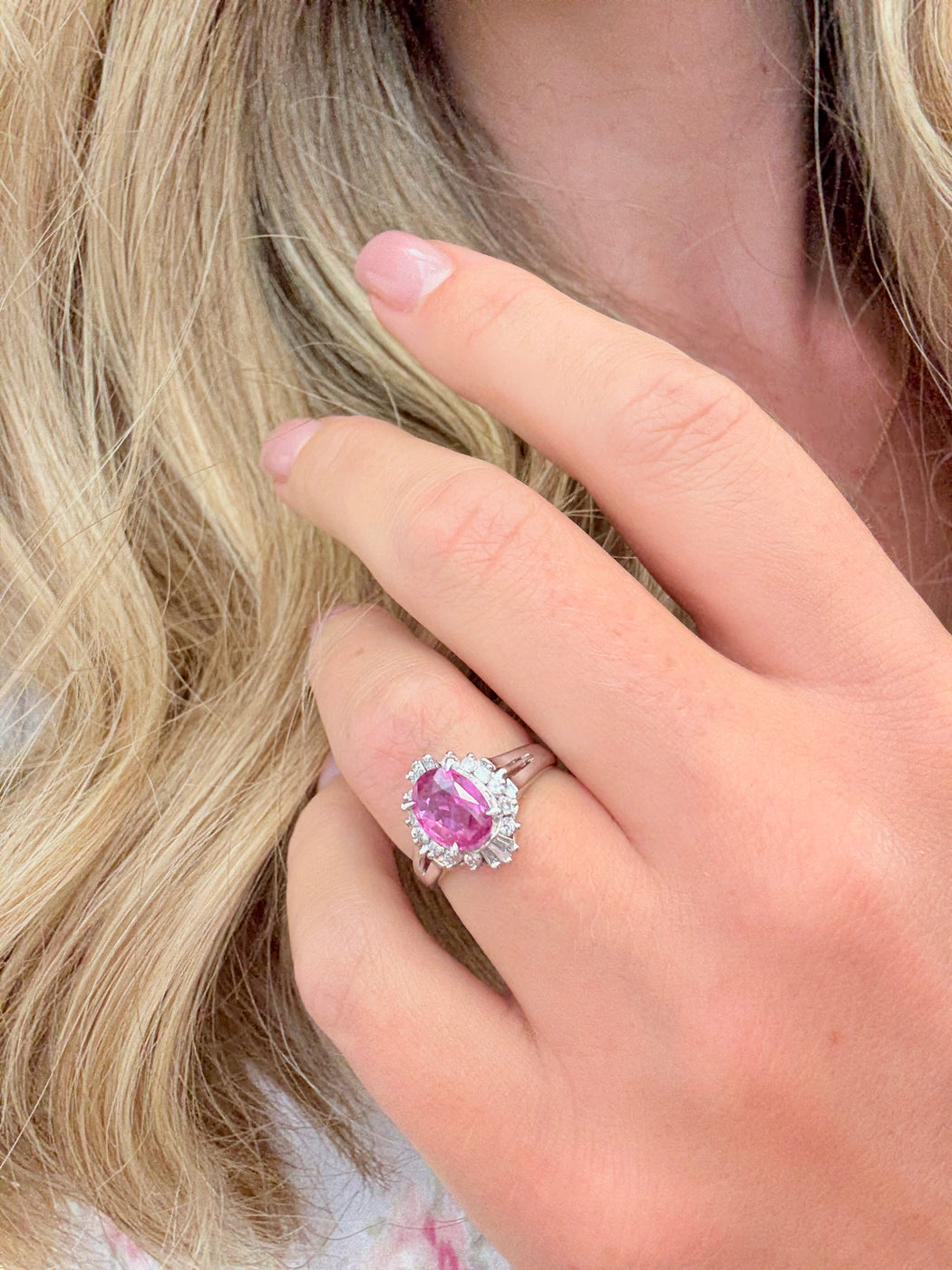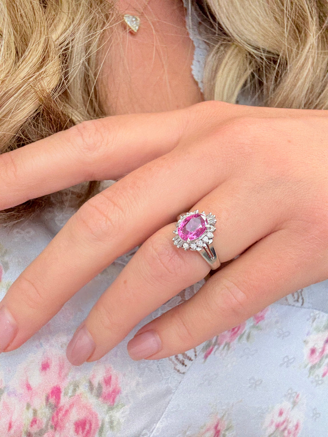 - Stones: (1) Pink Sapphire & (18) Diamond