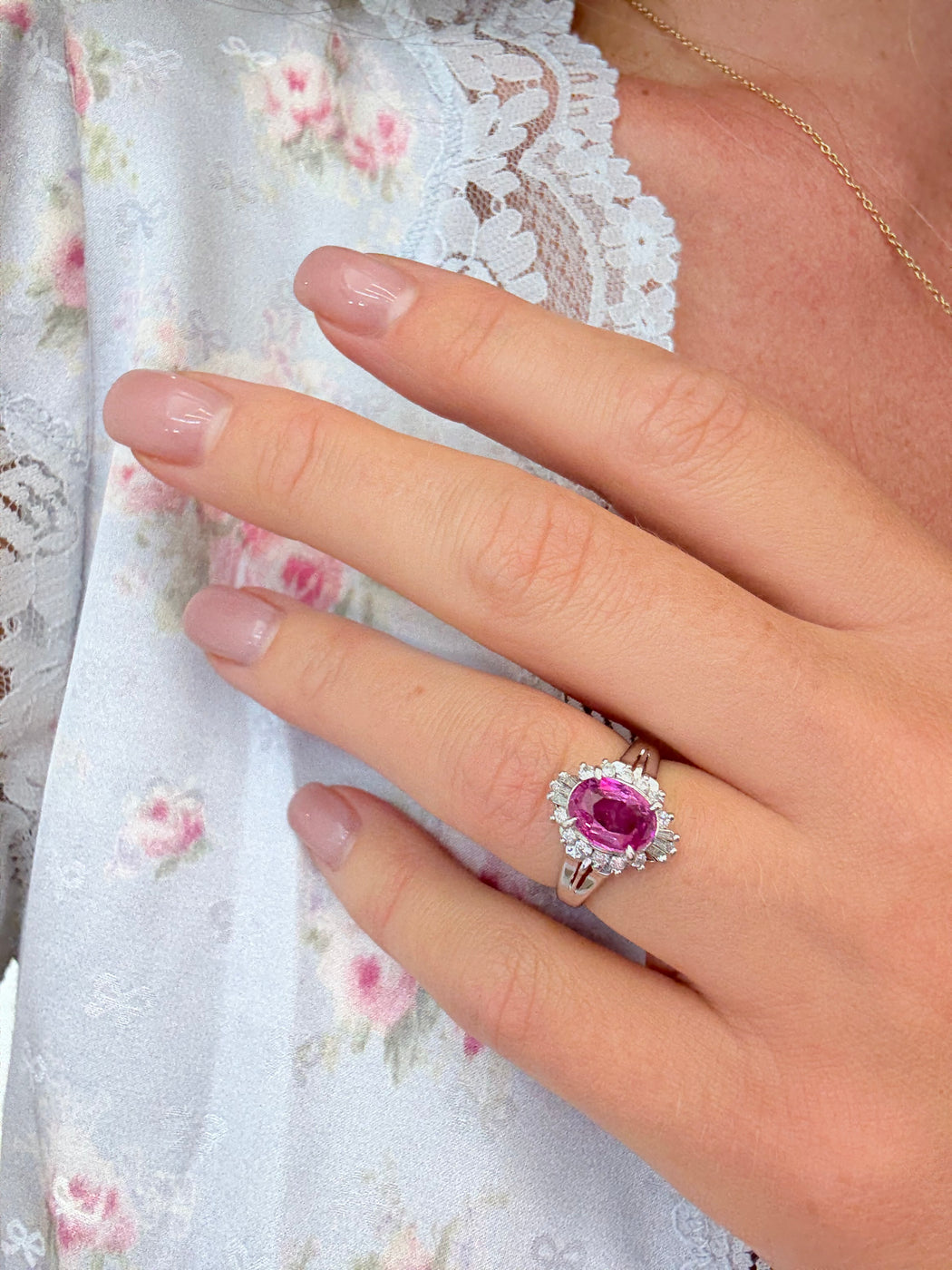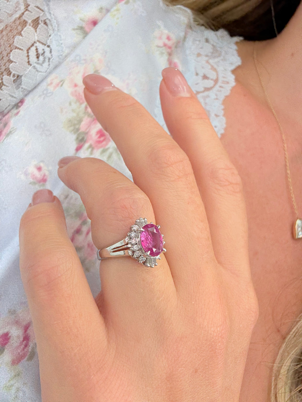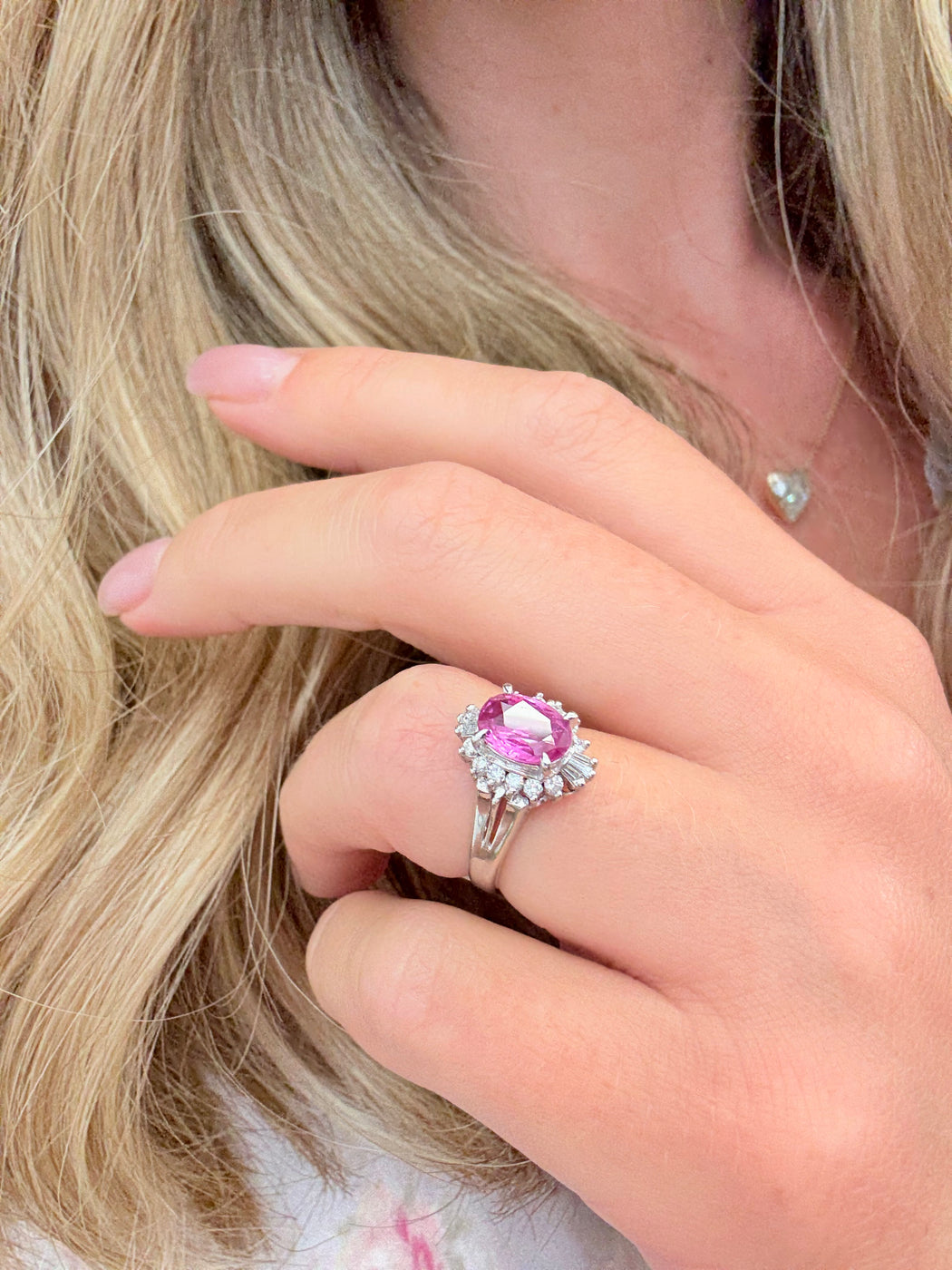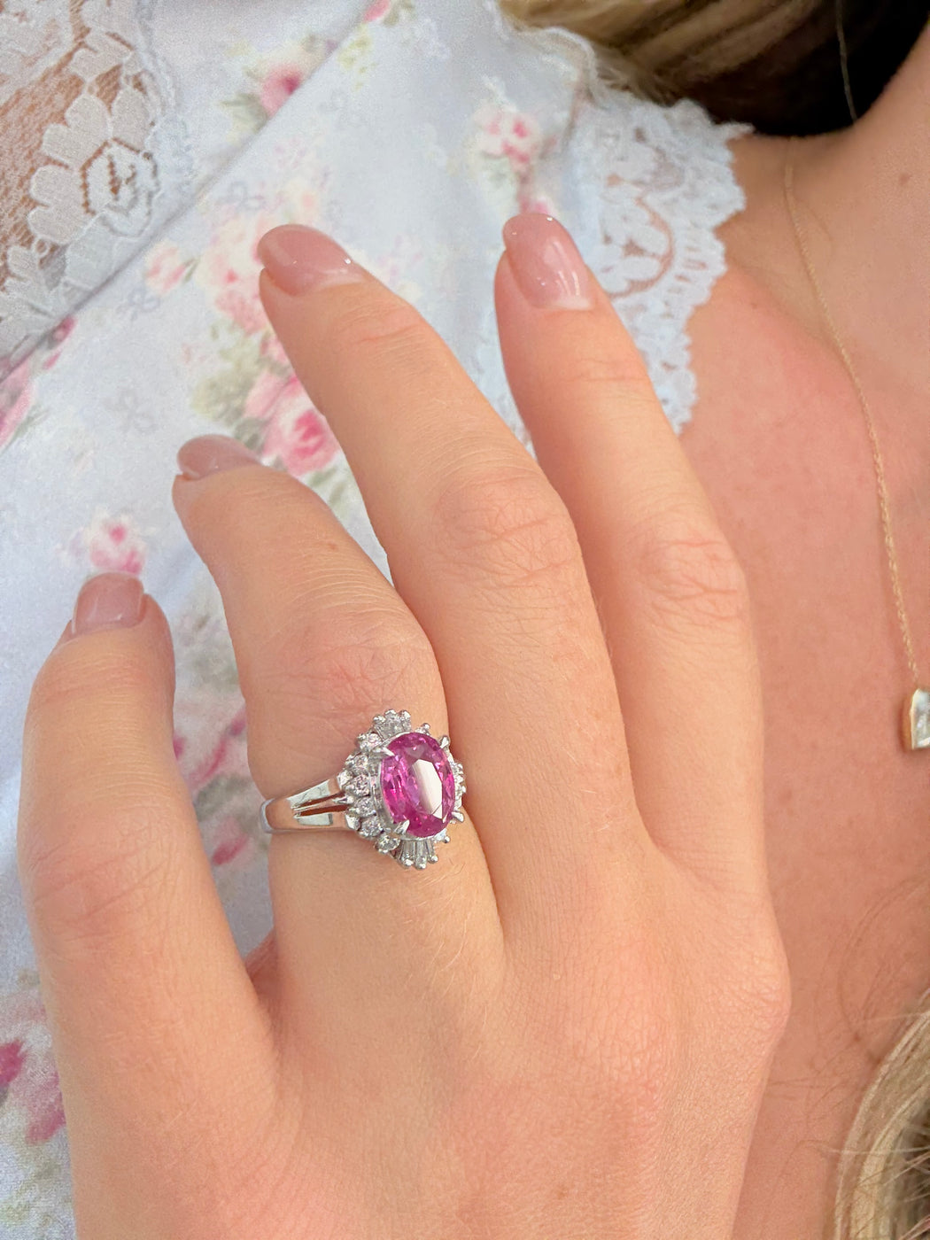 - Stones: (1) Pink Sapphire & (18) Diamond