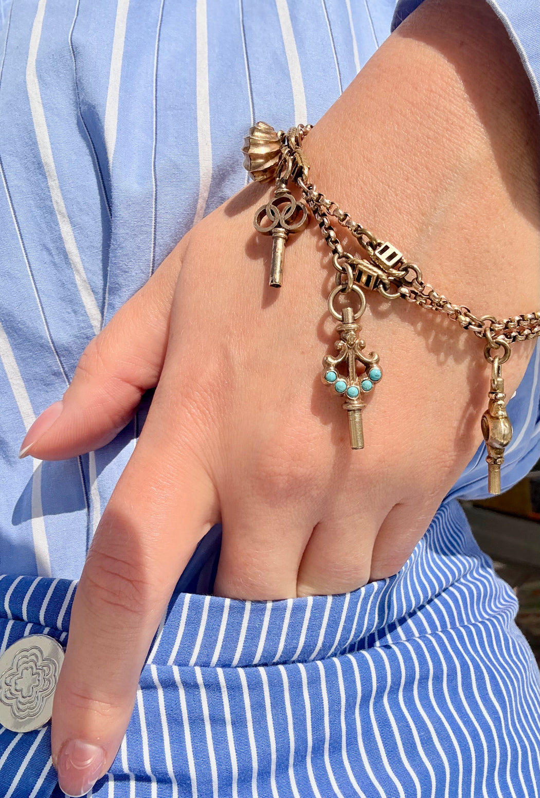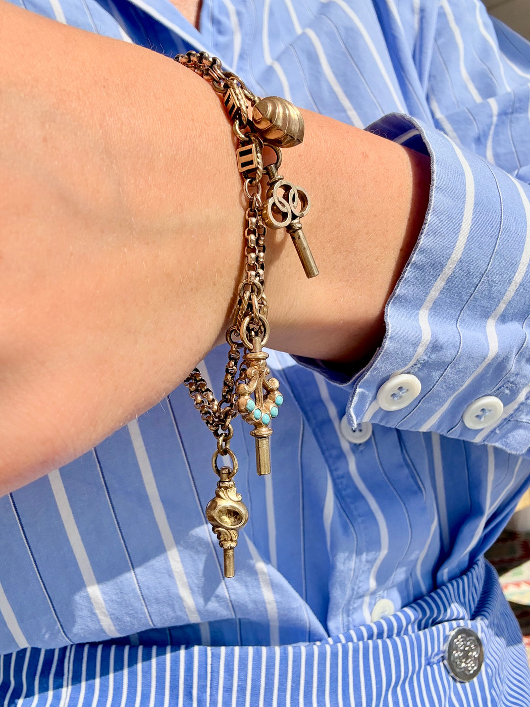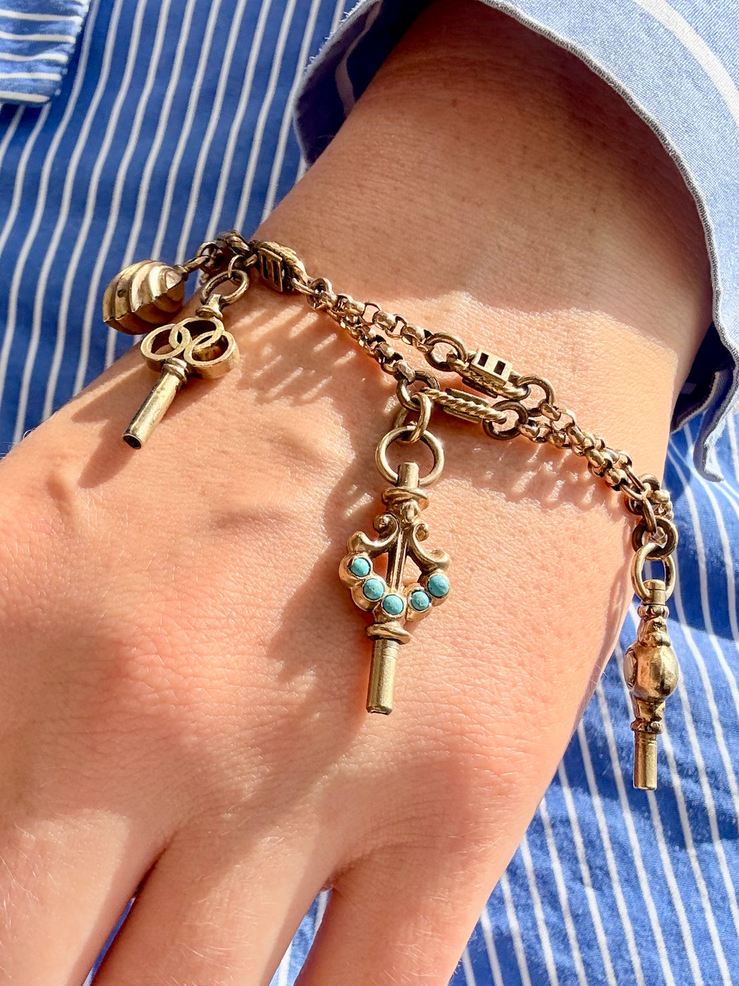 Turquoise Charm Bracelet, 14k Two Tone