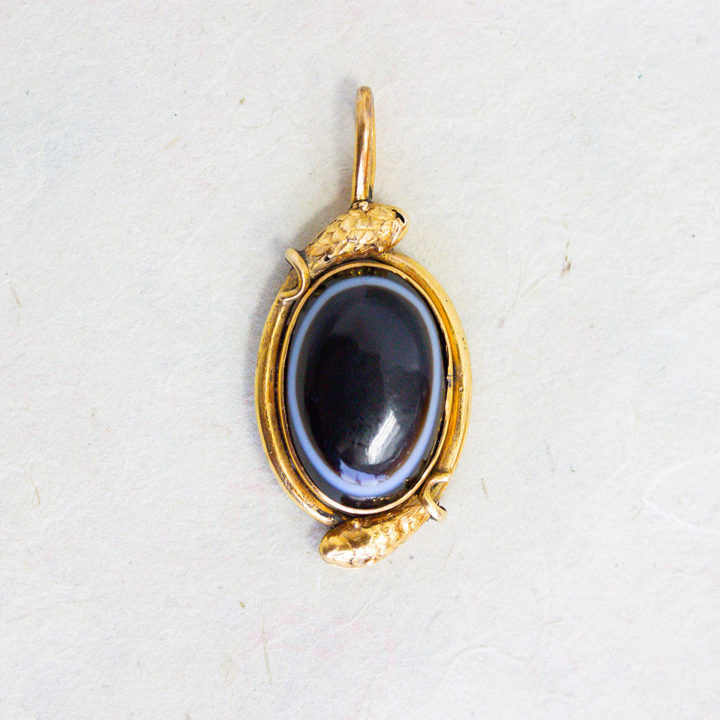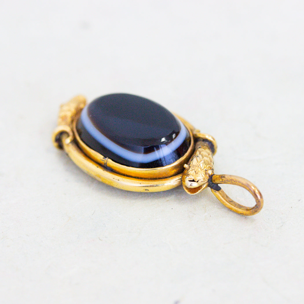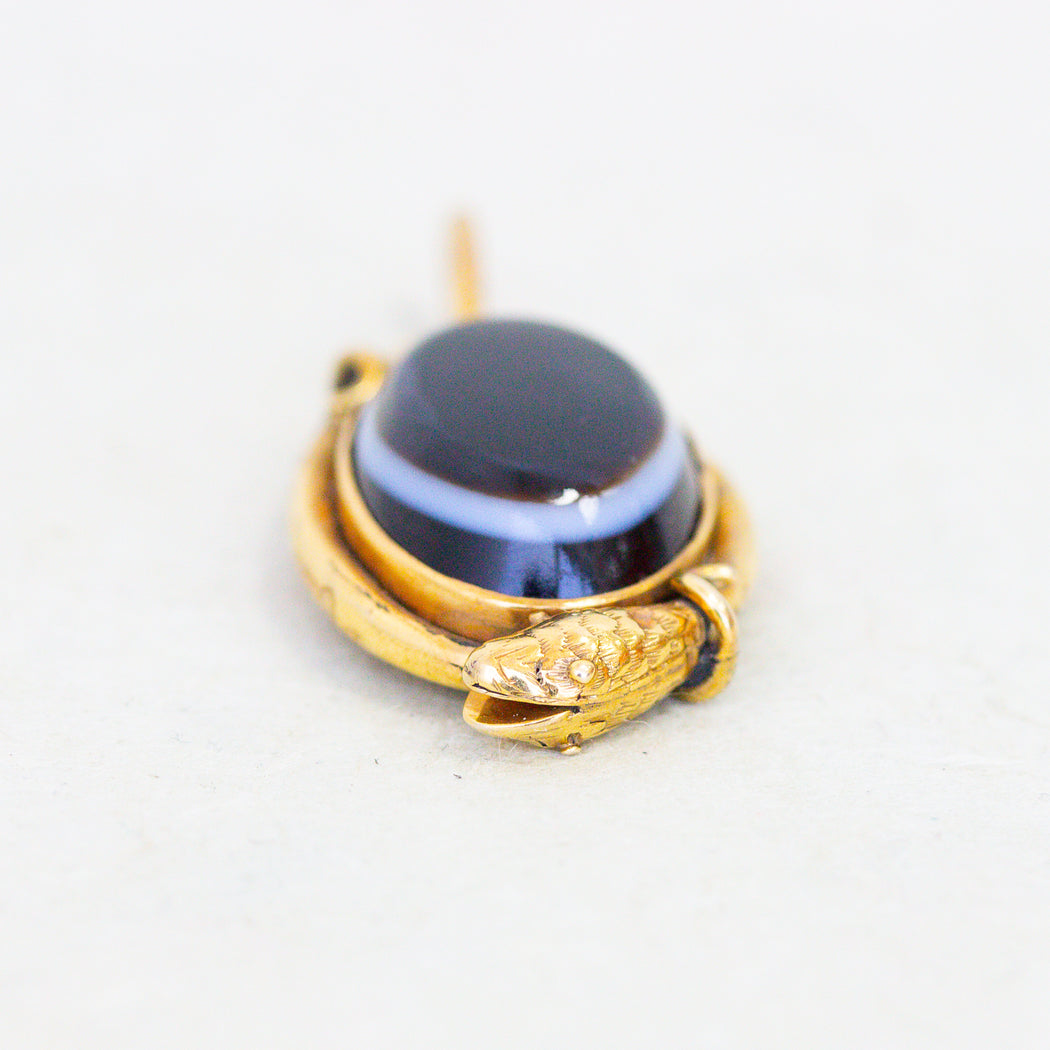 Victorian Banded Agate & Hair Snake Charm, 15k