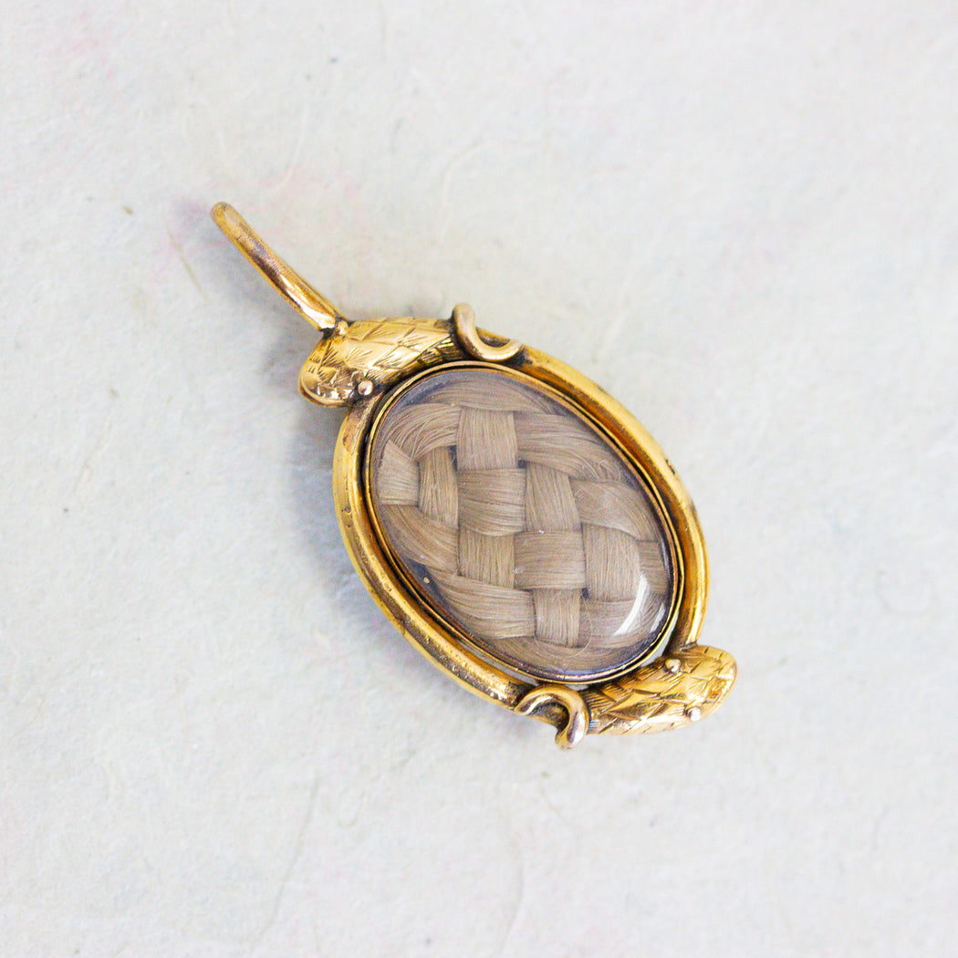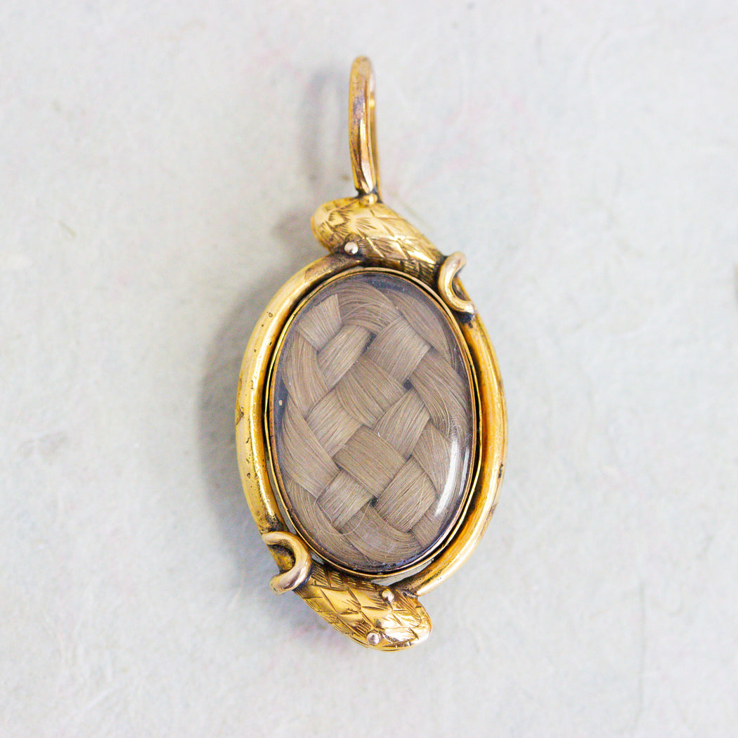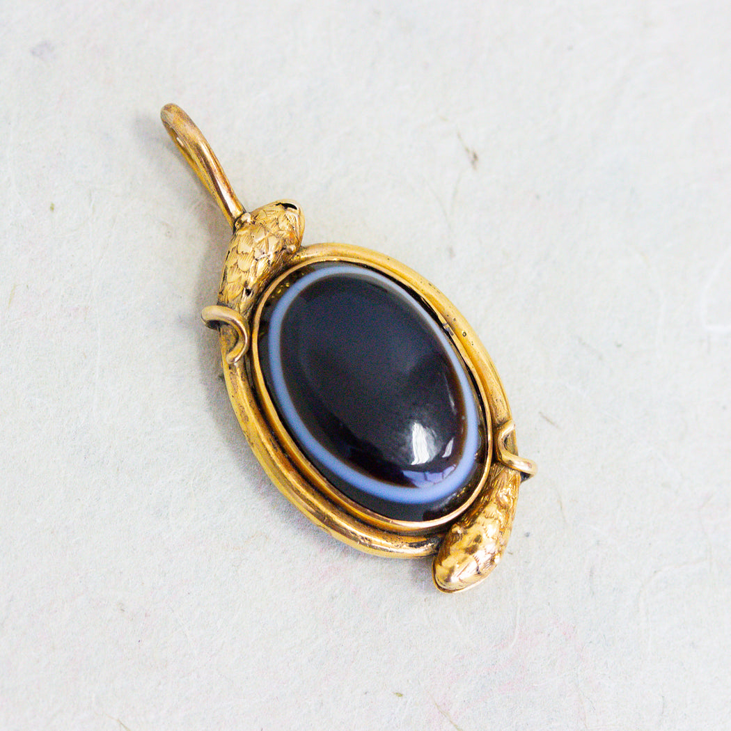 Victorian Banded Agate & Hair Snake Charm, 15k