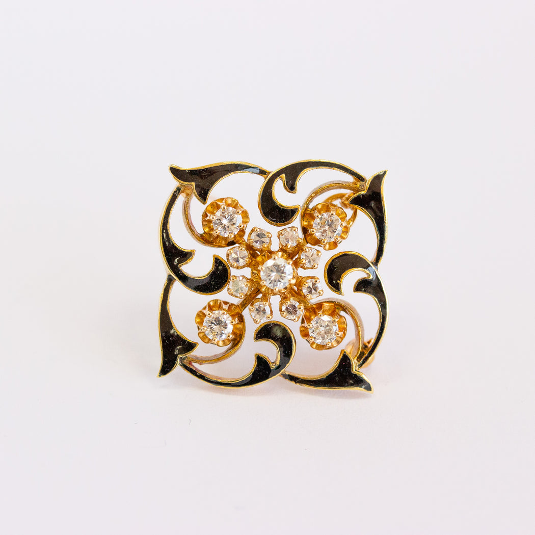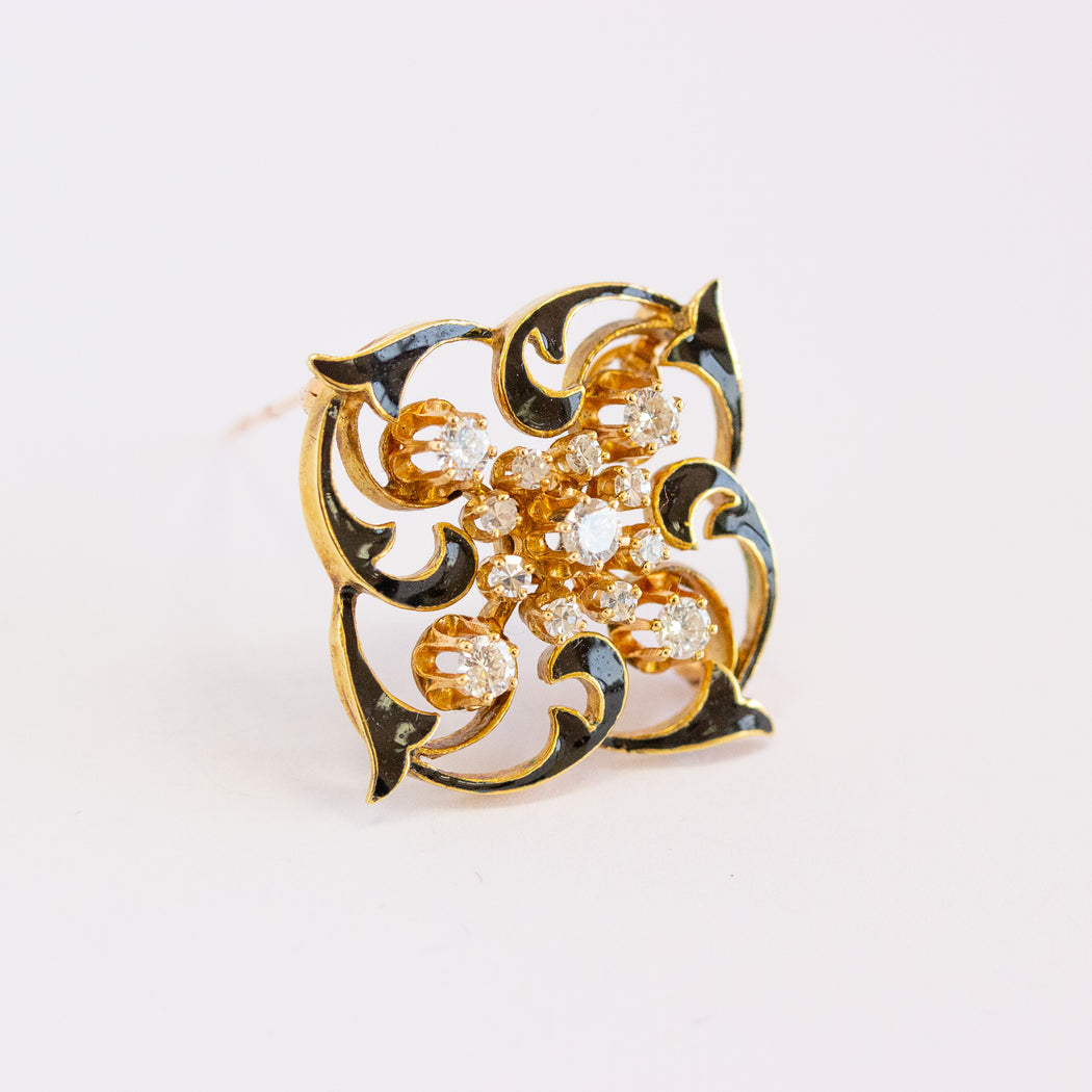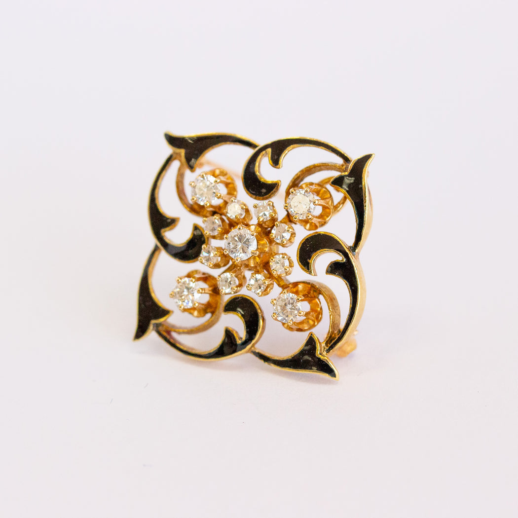 Vintage Diamond & Enamel Pin/Pendant, 14k