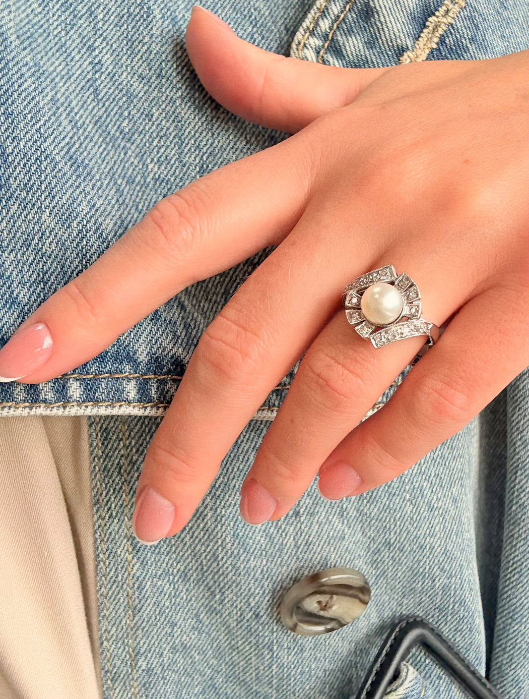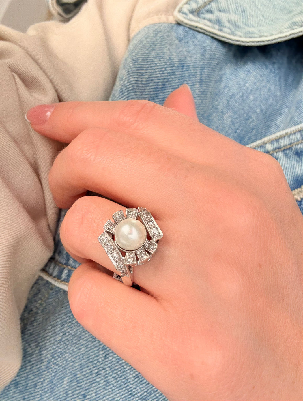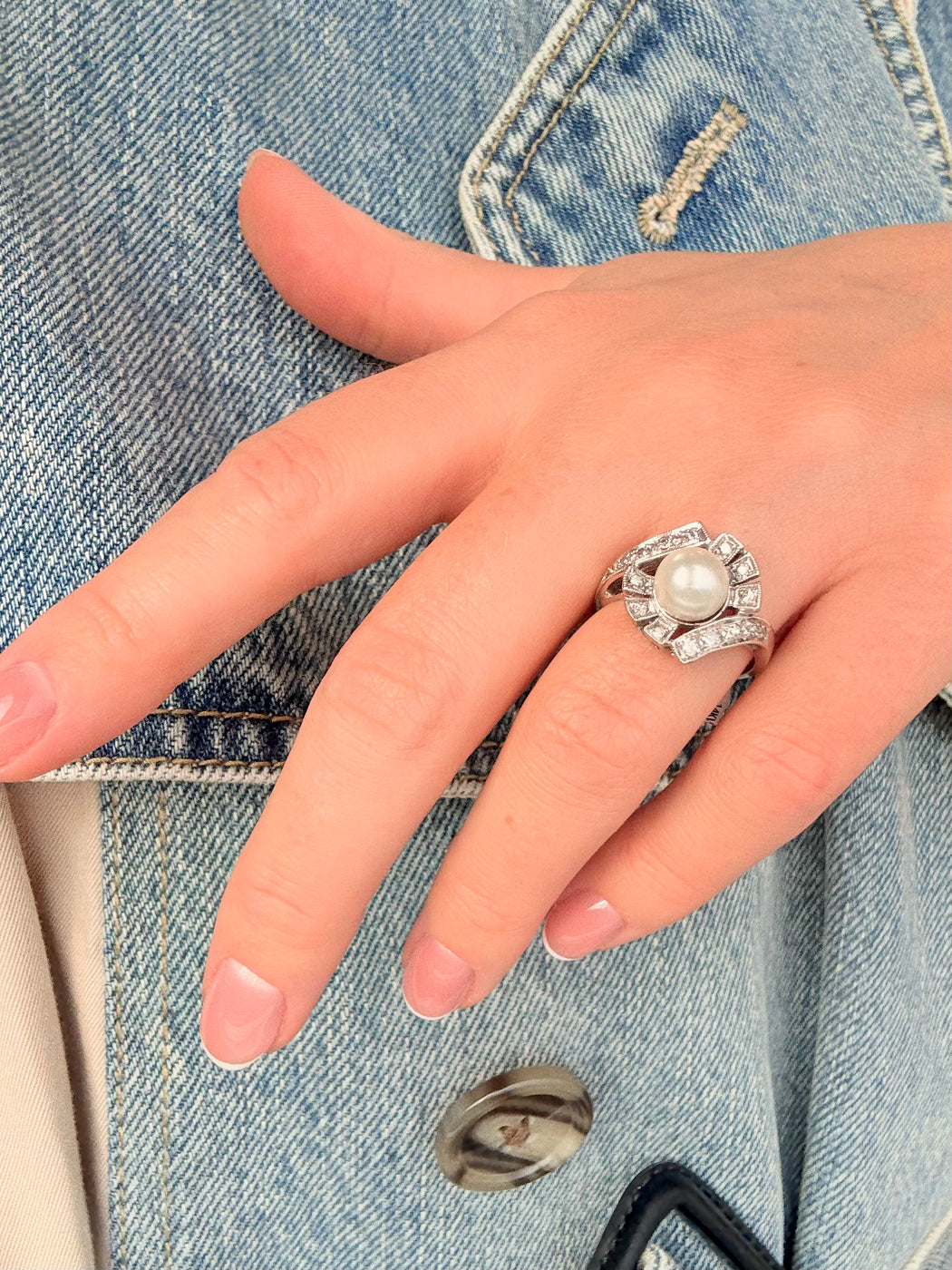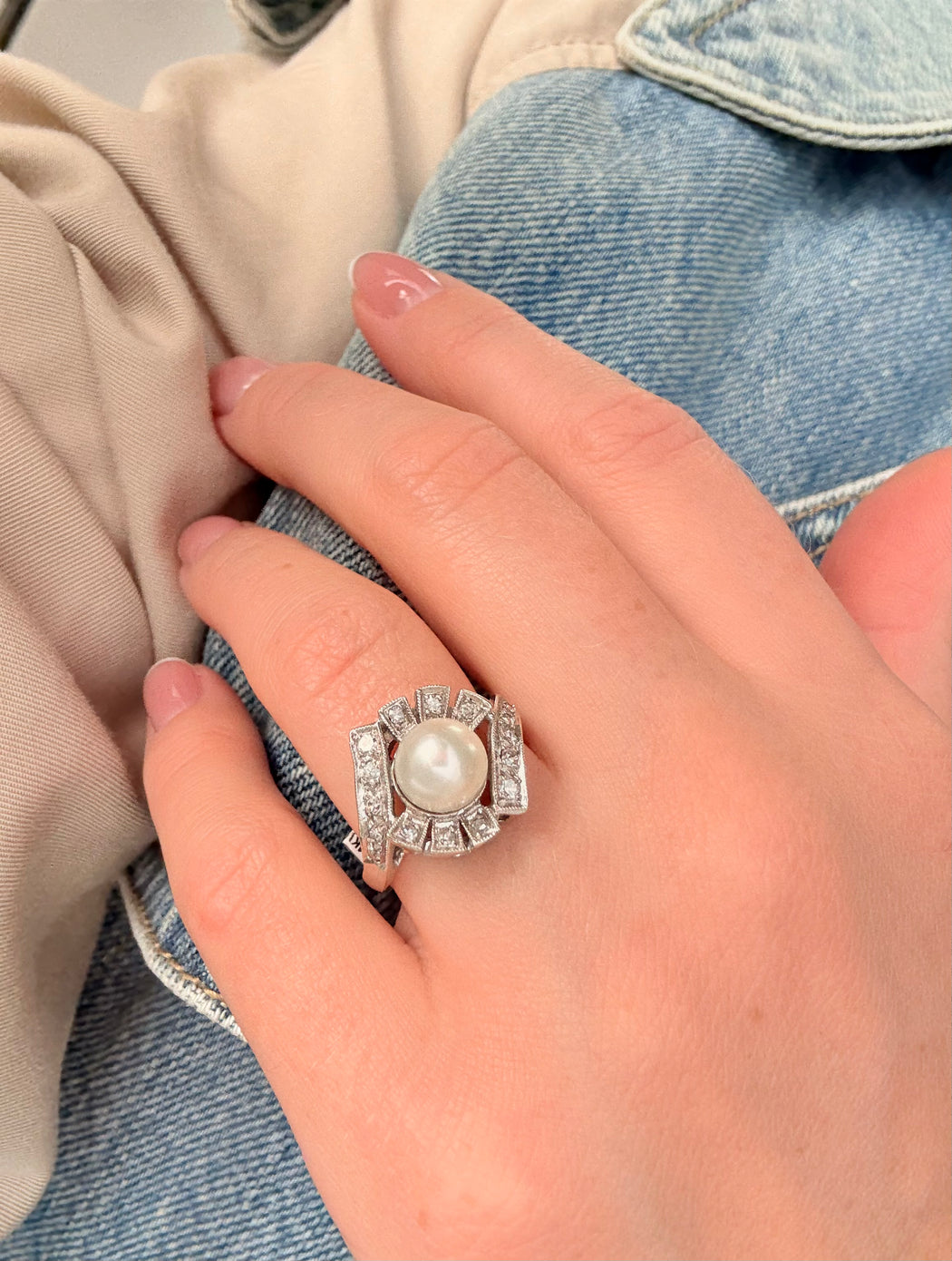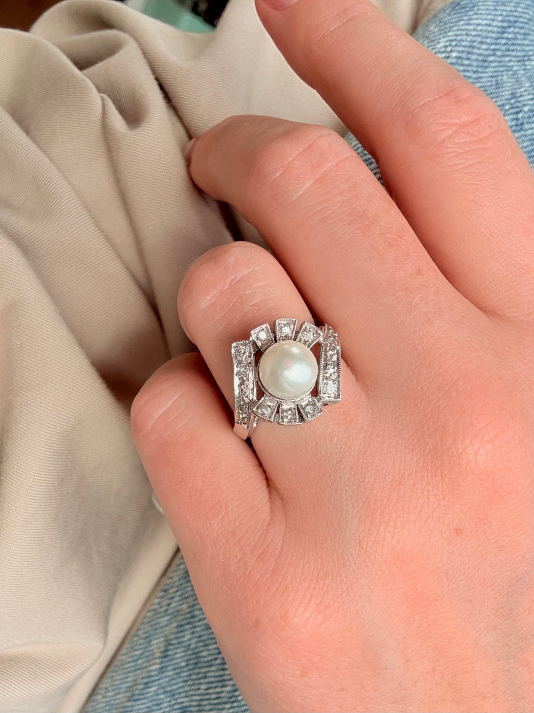 Vintage Pearl & Diamond Cocktail Ring, 14k